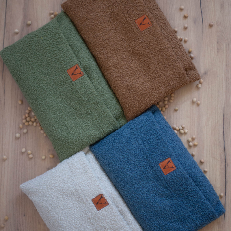 NOWOŚĆ! Termofor z pestkami wiśni. Miękki i przyjemny w dotyku jak pluszowy miś. Zapakowany prezentowo i bez plastiku. Wykonany z tkaniny boucle recyklingowej. Przyjemnie szeleści i pięknie pachnie.