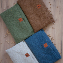 Poszewka na termofor to, tkanina recyklingowa NOW OR NEVER, ta tkanina jest bardzo miękka i przyjemna w dotyku jak pluszowy miś, przyjemna dla skóry, również posiada certyfikat. Poszewka jest uszyta na zakładkę co ułatwia ogrzewanie dłoni i stóp.